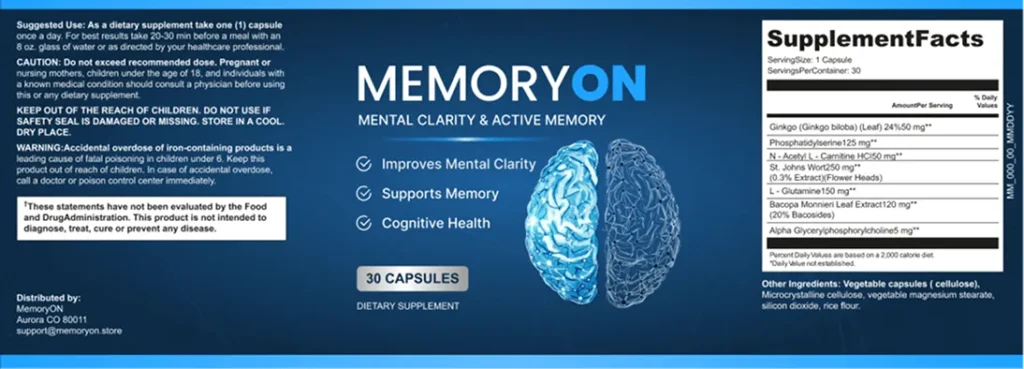 MemoryON is a premium dietary supplement designed to provide nutritional support for mental clarity, focus, and cognitive performance as you age. Its formula is crafted to support essential aspects of mental function, such as brain energy, healthy circulation, and overall balance needed to keep your mind active throughout the day.